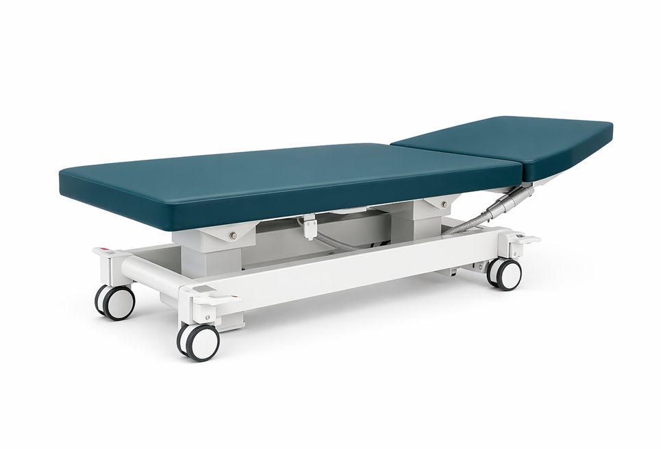 Me sel ulike operasjonsbord, undersøkingsbenkar og assistansebord, samt anna tilbehøyr.